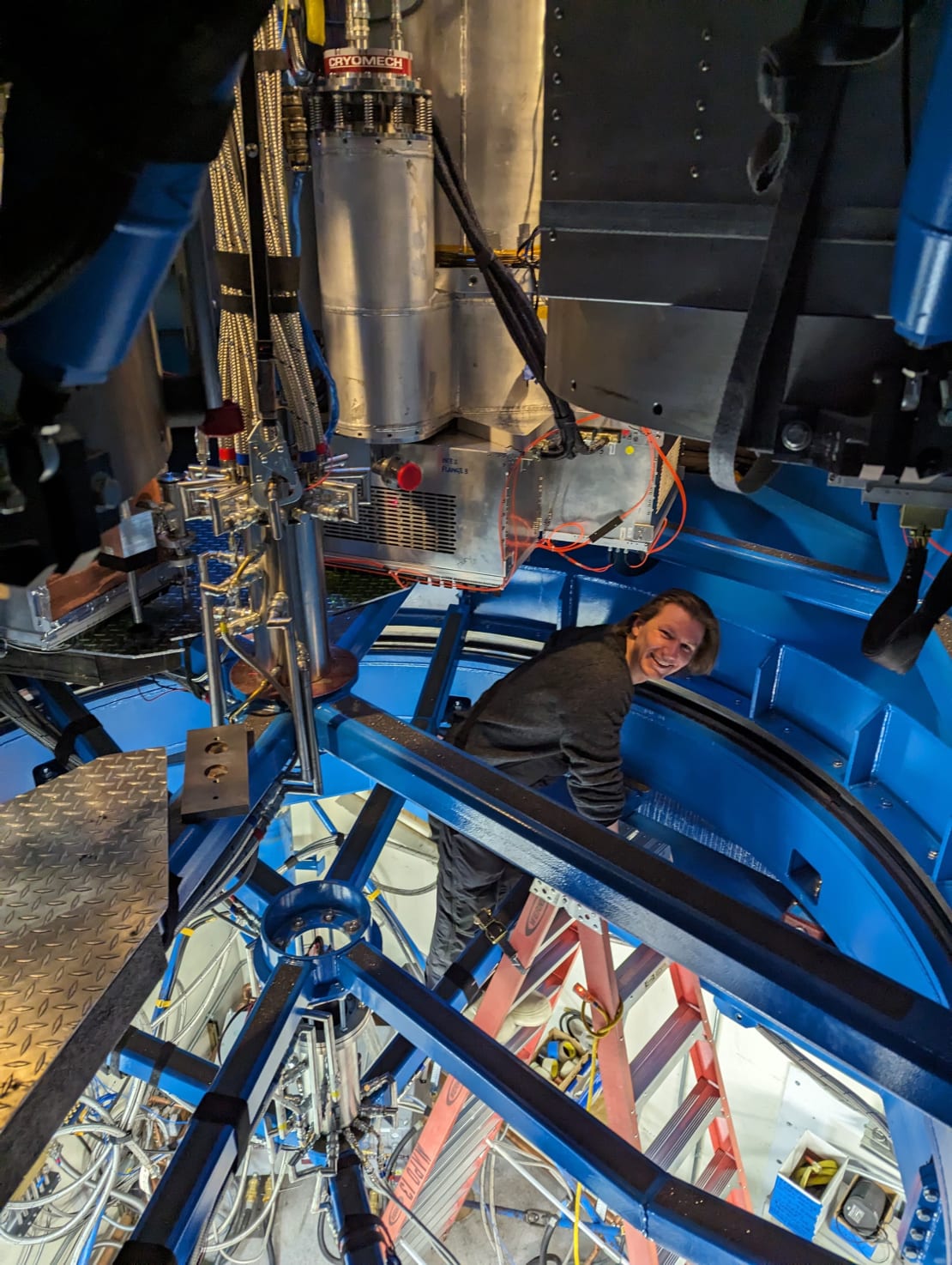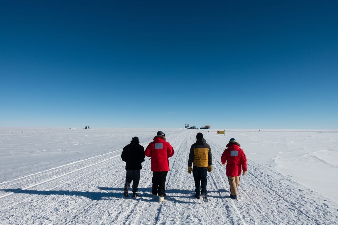 There was plenty of activity last week at the Pole. IceCube’s winterovers attended a presentation by the Antarctic operations manager, did some maintenance tasks out at the IceCube Lab, and participated in ERT training, which involved a staged explosion in the generator room as a prompt for a mass casualty incident drill. The winterovers received training on using an ultrasound machine and practiced providing medical assistance to “victims” as part of the exercise. At the end of the week, they trekked out to the Dark Sector to swap facility tours with the South Pole Telescope team. Below we see IceCube winterover Kalvin climbing into the BICEP array. For a nice black and white image of the BICEP, click here, and for the full gallery of these exquisite South Pole photos, click here.