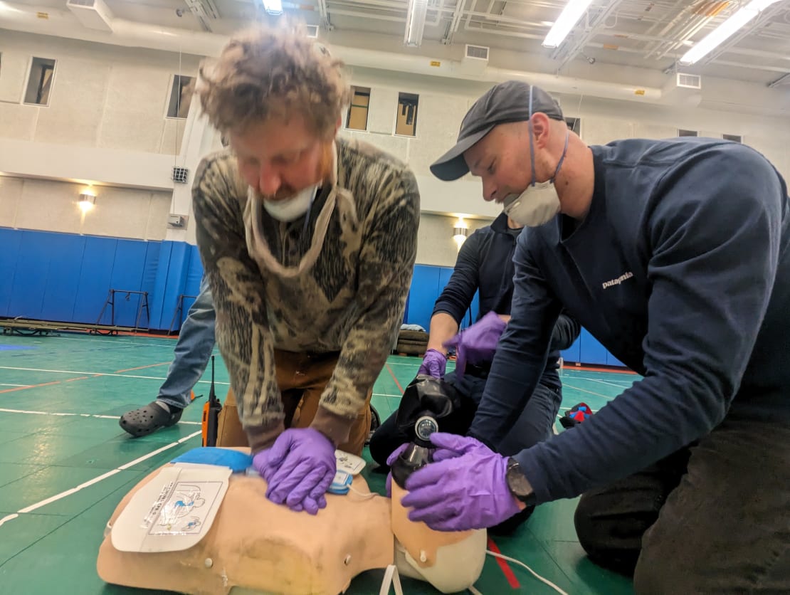 There was lots of activity last week at the Pole for IceCube’s winterovers. One of the highlights was an ERT mulitple casualty incident drill, which involved participation from the whole station. IceCube winterover Conor is seen responding alongside another winterover to assist a critically injured “patient,” while Kalvin’s role involved acting as a patient, in this case one with a broken ankle. Last week the winterovers also had some work out at the IceCube Lab as well as greenhouse harvesting tasks. They both participated in outreach for the IceCube Masterclass through a scheduled webcast with collaborating instiutions in Germany. Meanwhile, the prolonged sunset continued to provide captivating skies.