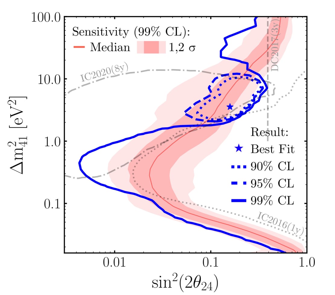 + info “A search for an eV-scale sterile neutrino using improved high-energy νµ event reconstruction in IceCube,” IceCube Collaboration: R. Abbasi et al. Submitted to Physical Review Letters. arxiv.org/abs/2405.08070 and “Methods and stability tests associated with the sterile neutrino search using improved high-energy νµ event reconstruction in IceCube,” IceCube Collaboration: R. Abbasi et al. Submitted to Physical Review D. arxiv.org/abs/2405.08077