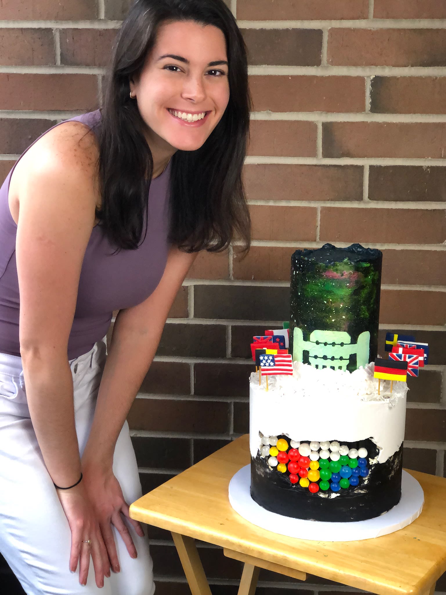 It was baked and decorated by UW–Madison graduate student Maria Prado, who has been baking and decorating elaborate cakes throughout the pandemic. (See her work at @cakes_by_mvp.)