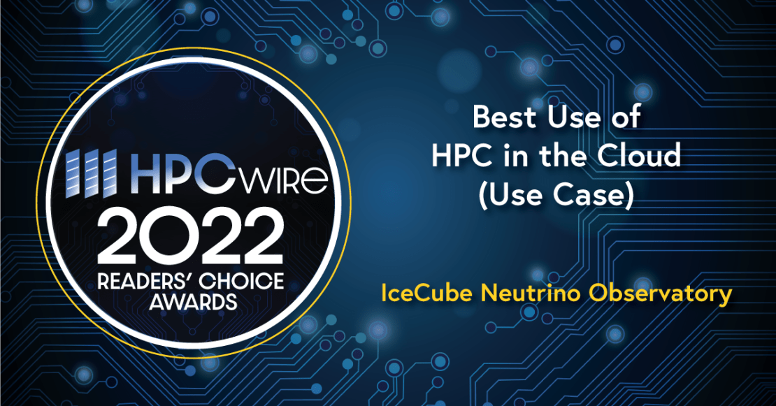 The IceCube Neutrino Observatory has been recognized in the annual HPCwire Readers’ and Editors’ Choice Awards, presented at the 2022 International Conference for High Performance Computing, Networking, Storage, and Analysis (SC22), in Dallas, Texas. The list of winners was revealed at the SC22 HPCwire booth as well as on the HPCwire website: www.hpcwire.com/2022-hpcwire-awards-readers-editors-choice.