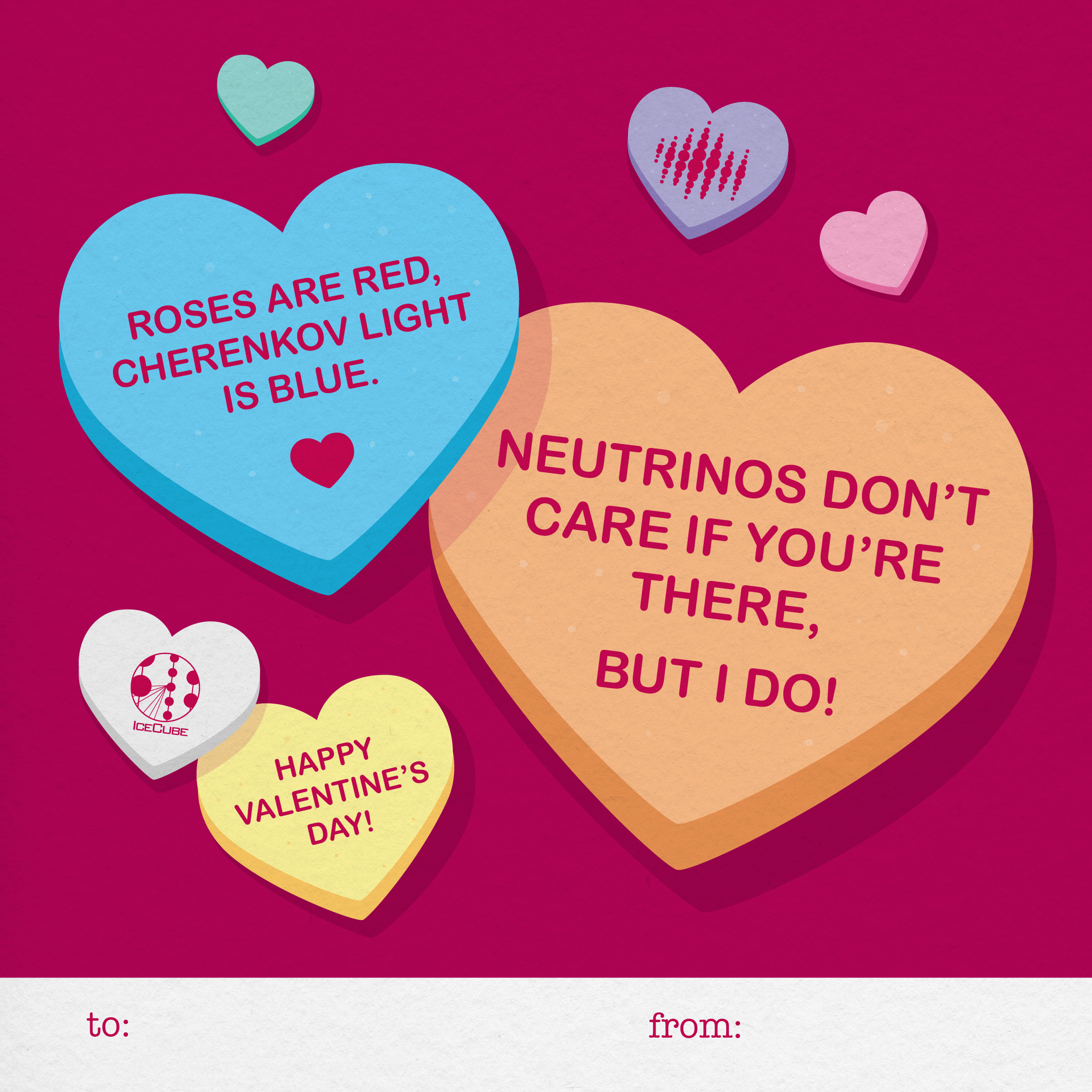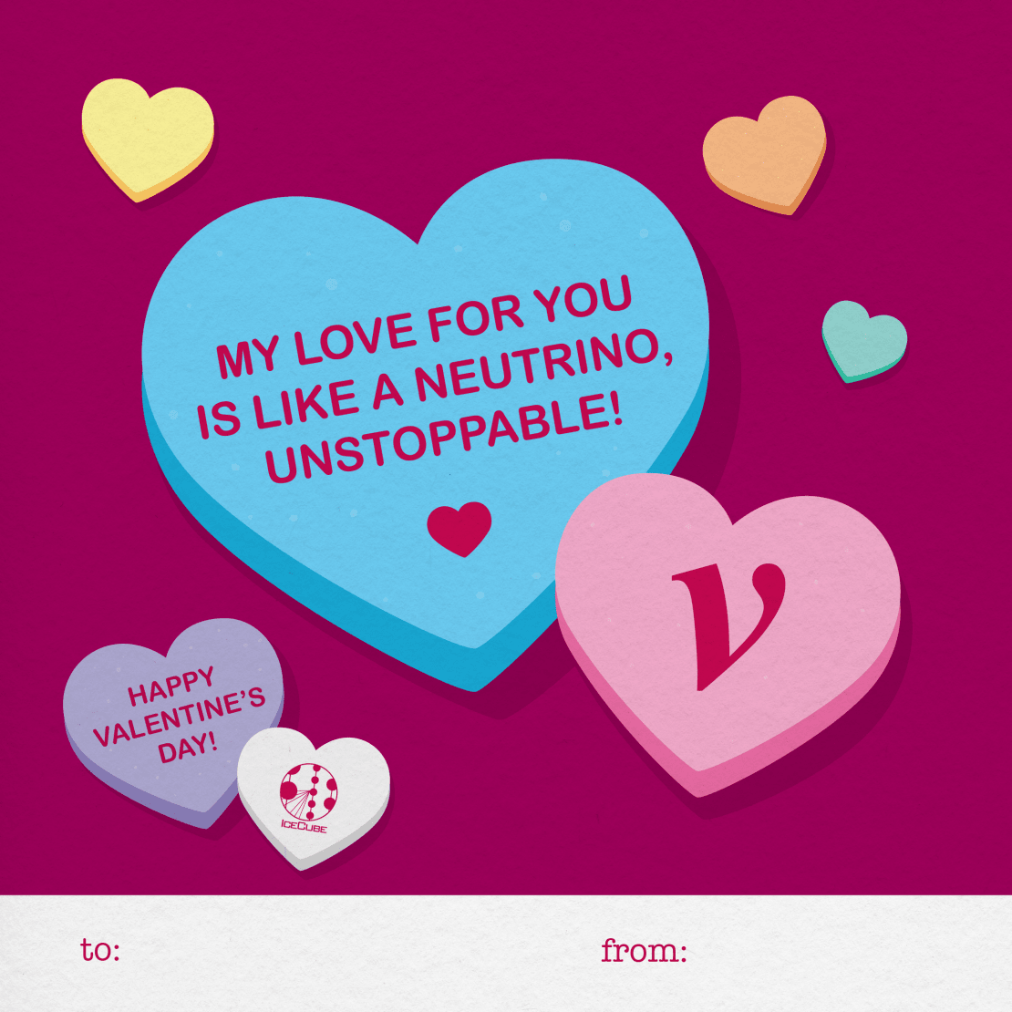 Do you love your sweetheart as much as you love neutrinos? Then our IceCube-themed Valentine’s Day cards are just the thing to show your affection!